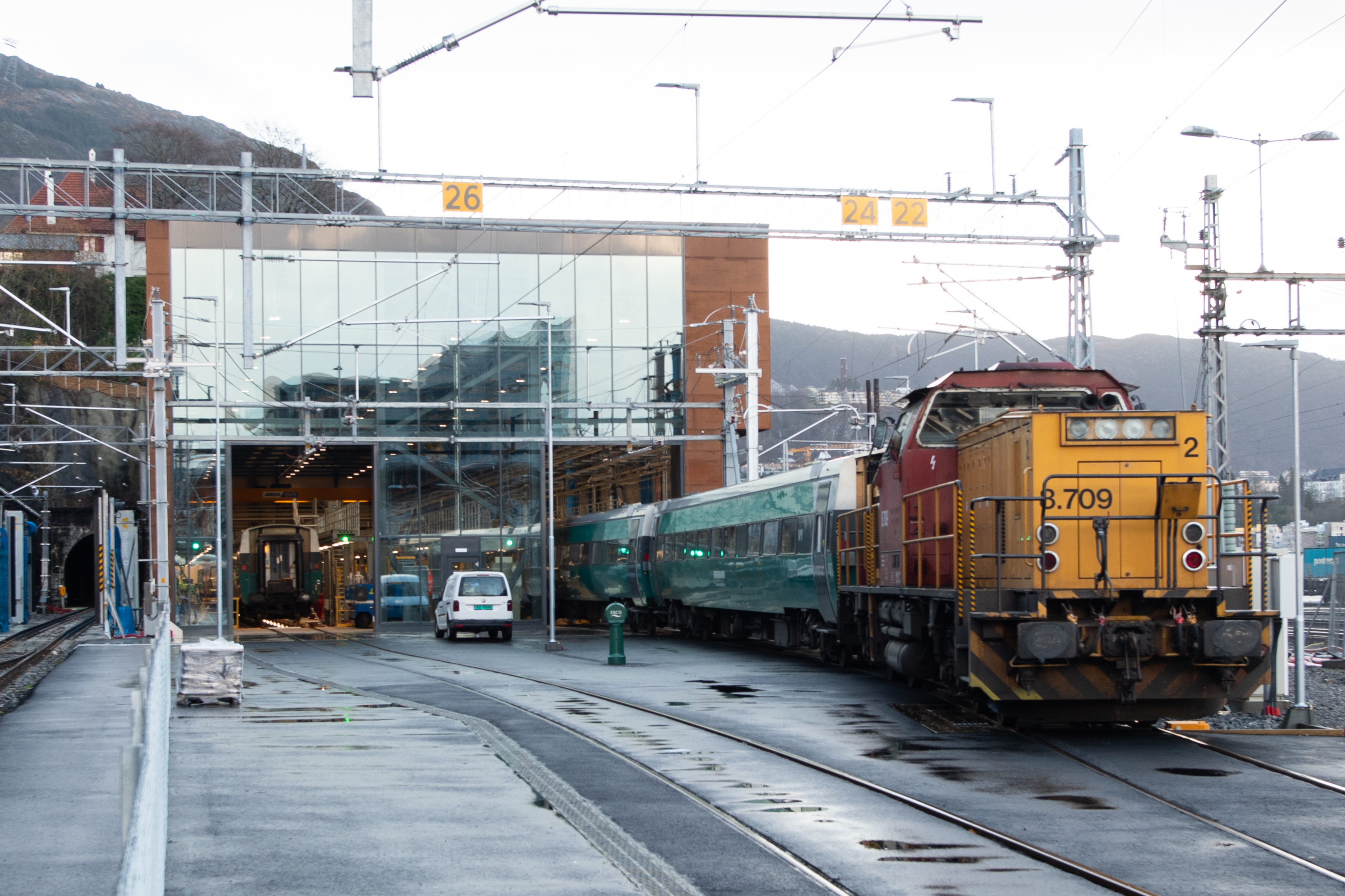 Verkstedhall som brukes til vedlikehold av togsett på Bergensbanen. Bygget består av et langstrakt verkstedsvolum med et sidevolum som huser kontorer, garderober og lagerfunksjoner. Bæring består av stålkonstruksjon kombinert med brystningselementer i betong og stedvis betongelement-vegger. Fasade i cortenstål og glass.