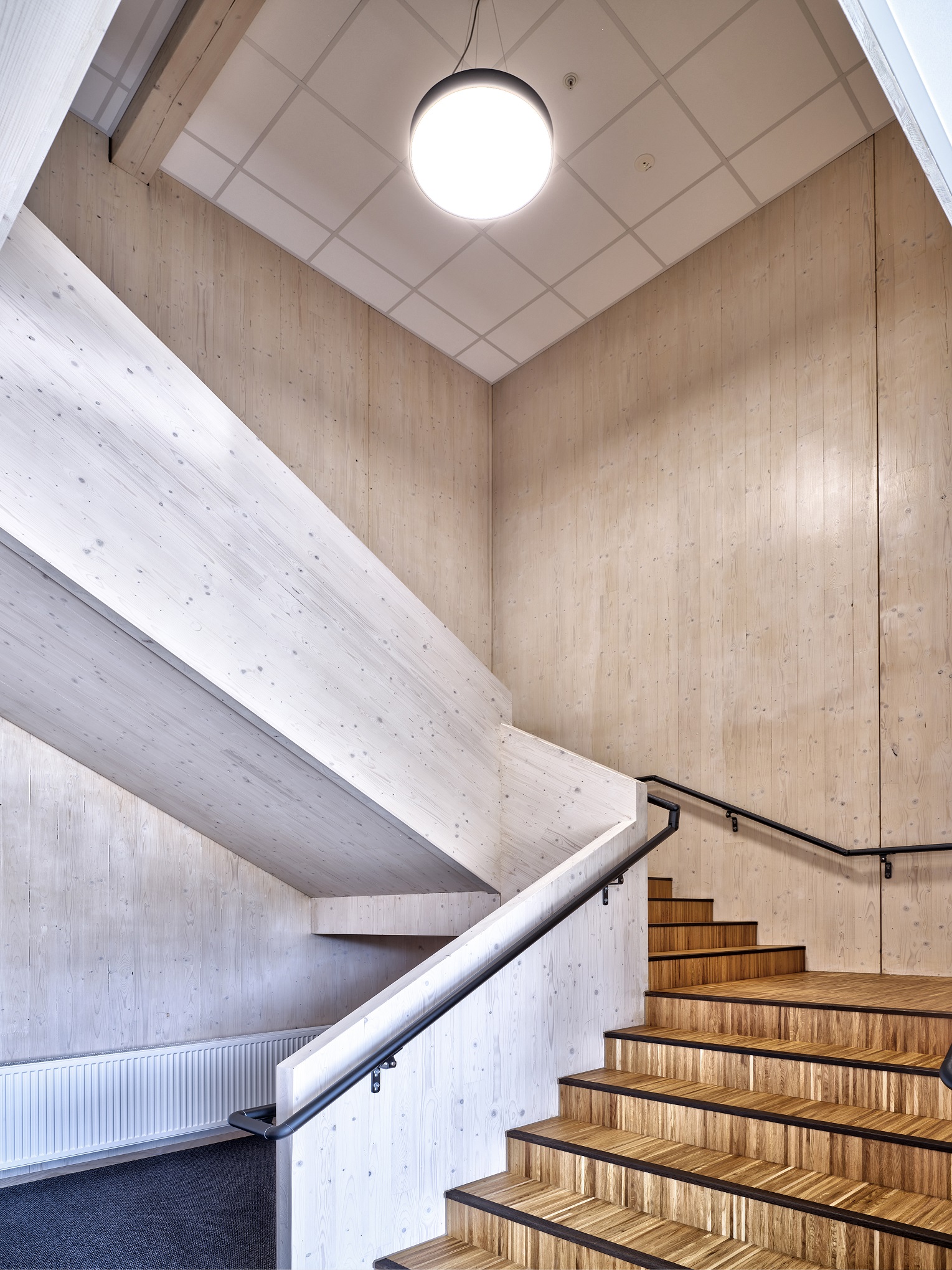 Trevirke skulle tydelig eksponeres både innvendig og utvendig for å gi en lun og god atmosfære i bygget. Som et ytterligere klimatiltak ble det bygget energibrønner for å gi miljøvennlig oppvarming av skolebygget året gjennom.